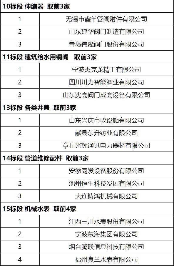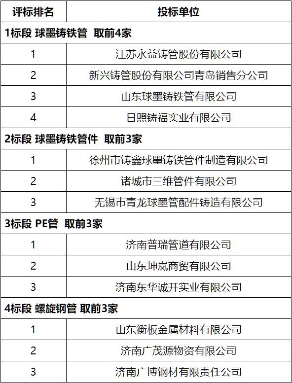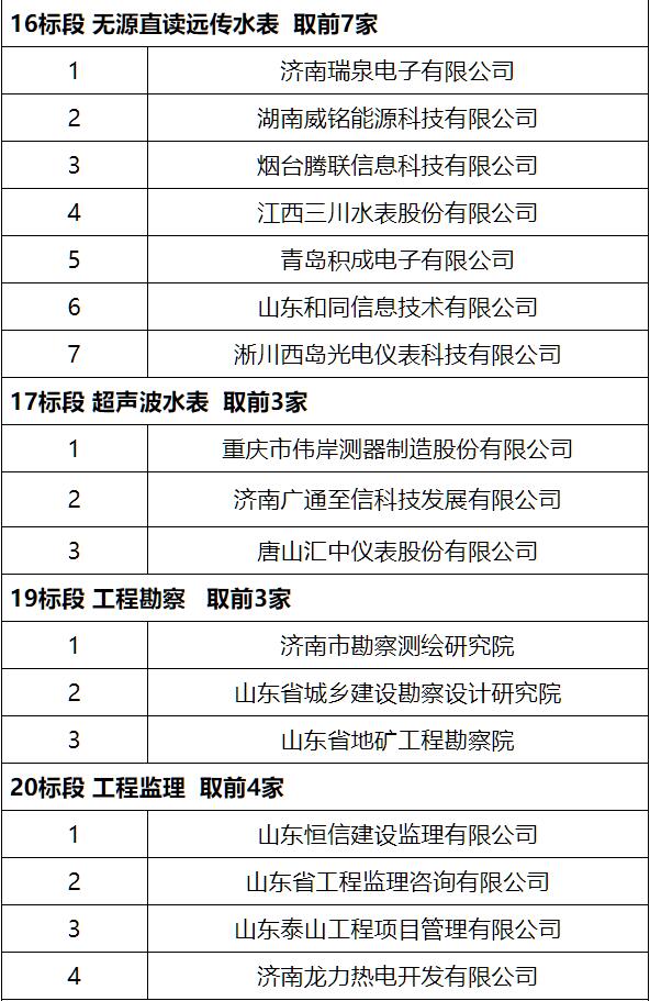 濟(jì)南水務(wù)集團(tuán)有限公司供應(yīng)商優(yōu)選評標(biāo)結(jié)果